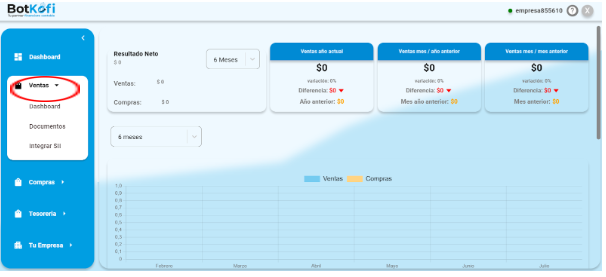 - En tu Dashboard de Botkofi, selecciona la opción de «Ventas» para acceder a las funciones relacionadas con la gestión de ventas.