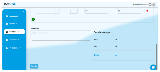– Una vez que todos los campos estén correctamente llenados, haz clic en Guardar para registrar la compra en el sistema.