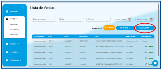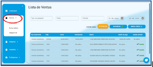 - Haz clic en la sección de «Ventas» ubicada en el menú principal de tu Dashboard. Esto desplegará un submenú con diferentes opciones relacionadas con las ventas.