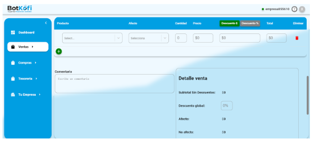 Generar una venta en Botkofi es un proceso sencillo y directo. Sigue estos pasos para añadir una nueva venta a tu registro: