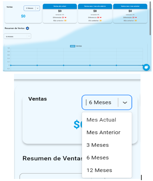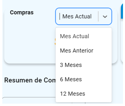- Visualiza la diferencia de compras de diversos periodos de tiempo como por ejemplo: mes anterior, actual, 3, 6 y 12 meses.
