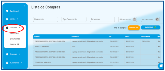 - Selecciona ‘Compras’: Haz clic en la opción «Compras» para desplegar las diversas funcionalidades asociadas con la gestión de tus compras.