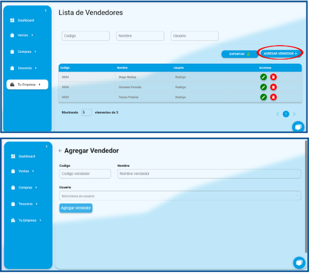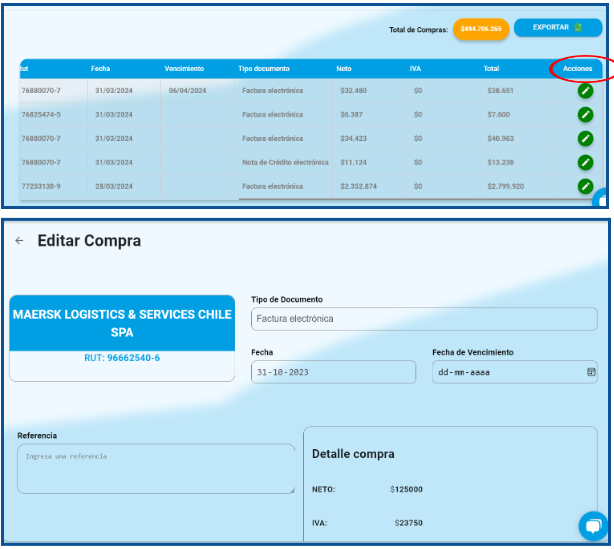 En la siguiente imagen podremos visualizar una imagen de referencia de cómo el usuario podrá visualizar las ventas y compras. (Tambien la opcion de exportar en un excel)