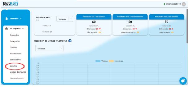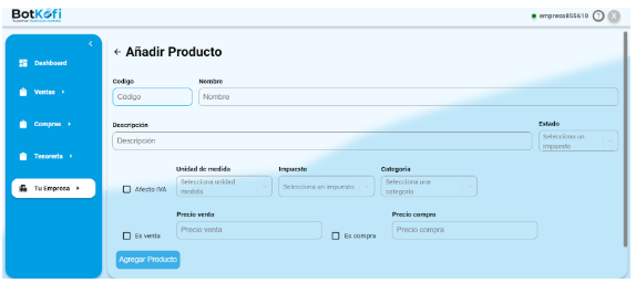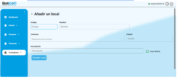 - Accede a la Página: En el menú lateral de Botkofi, selecciona la opción «Tu Empresa». Este es tu centro de control para administrar los detalles y configuraciones relacionadas con tu empresa.