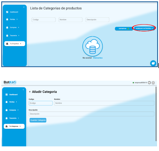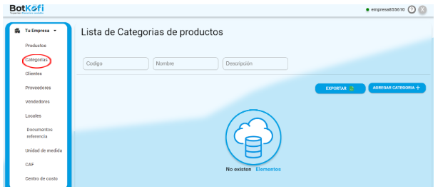 Organizar tus productos en categorías específicas es fundamental para una gestión eficiente de tu inventario en Botkofi. En esta sección, te guiamos paso a paso sobre cómo agregar nuevas categorías, con instrucciones claras y acompañadas de imágenes para facilitar el proceso.