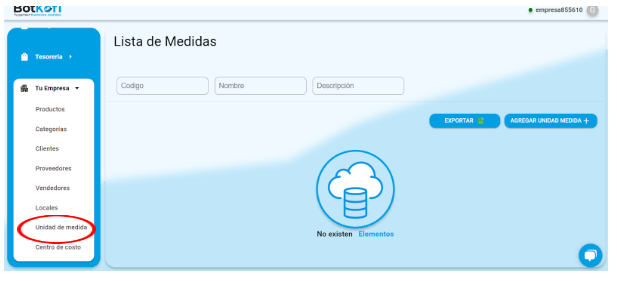 Selecciona Unidades de Medida 📏: Dentro de las opciones de «Tu Empresa», selecciona «Unidades de Medida».