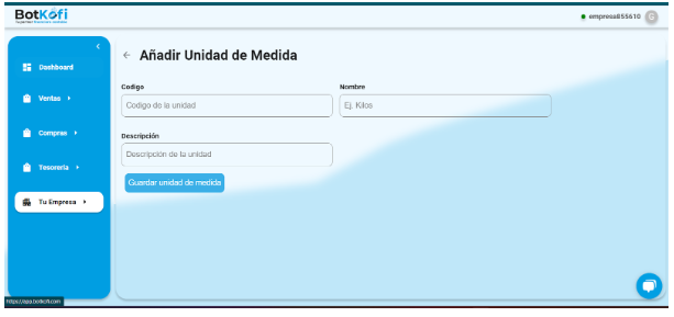 ¡Listo! Así de fácil es añadir una nueva unidad de medida en Botkofi, permitiéndote gestionar tu inventario y operaciones con mayor exactitud. 🎉