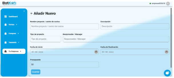 ### 📊 Cómo Agregar un Proyecto o Centro de Costos en Botkofi