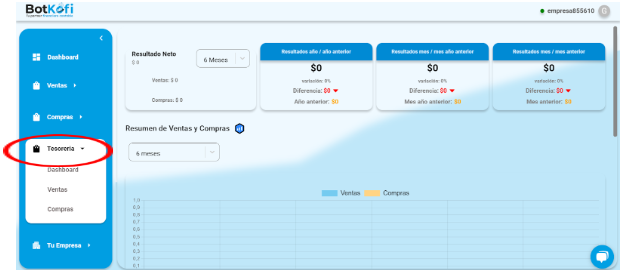 En esta sección te vamos a ayudar a como acceder a tu tesorería y a como utilizarla para que puedas sacar el máximo provecho a ella, para ello debes seleccionar el apartado de apartado de “tesorería”