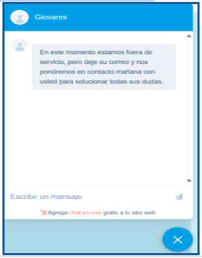 - Chat Automatizado: Fuera de nuestro horario regular, el chat se activará automáticamente.
