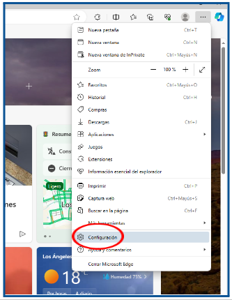 - En la lista que se despliega, selecciona “Configuración”.
