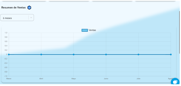 Para ello selecciona en el menú desplegable “dashboard” de tesorería y una vez dentro podrás visualizarlo de esta manera como en la siguiente imagen, en ella podrás ver un resumen de tus ventas.